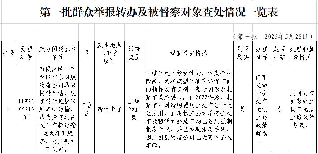 第一批群众举报转办及被督察对象查处情况一览表